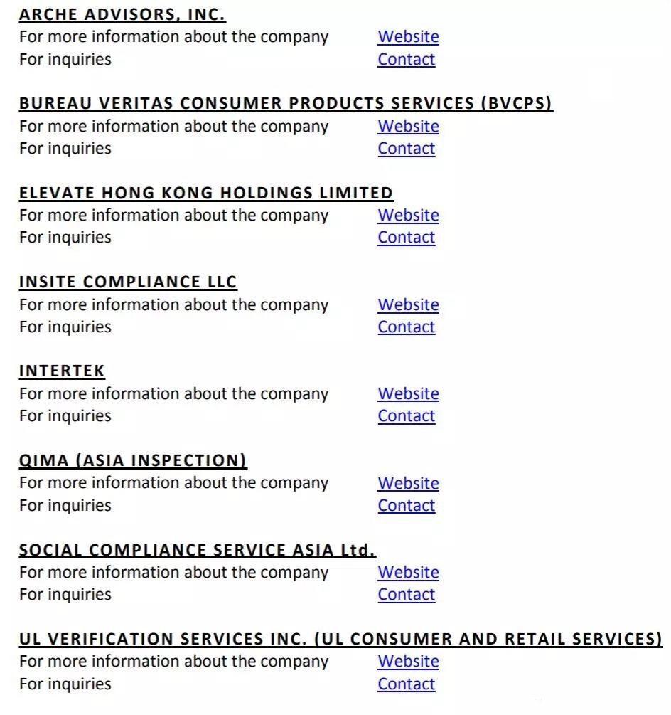 根据Disney官方网站公布,2019年4月1日起,Disney认可的审核公司有变化,总量还是8家,QIMA被新纳入,而审核行业巨头SGS被排除在外。清单如下: